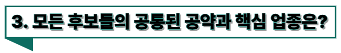 3. 모든 후보들의 공통된 공약과 핵심 업종은?