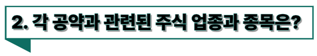 2. 각 공약과 관련된 주식 업종과 종목은?