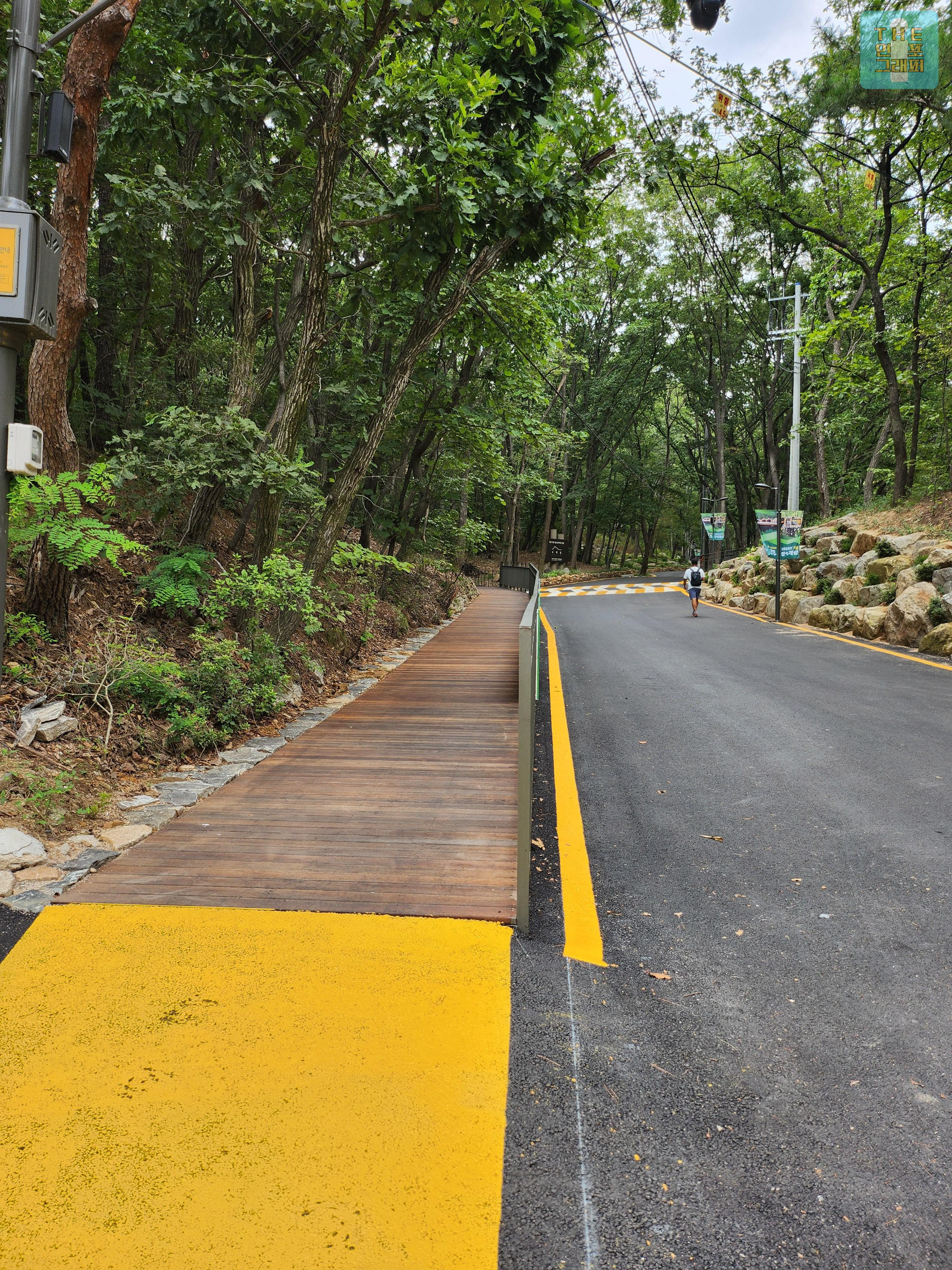 이 곳에 주차를 하고 보행자 전용 데크를 약 2분 정도 올라가면 수락휴가 나타납니다.
